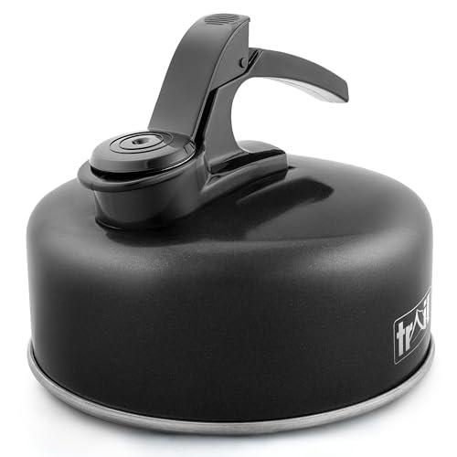 Trail 1L Whistling Kettle, Lightweight Durable Aluminium, Rust Resistant, Easy Pour Whistle Spout, Heat Resistant Handle, Fast Boil Stove Top Travel Kettle, Outdoor Hiking Backpacking, 0.2kg (Black)