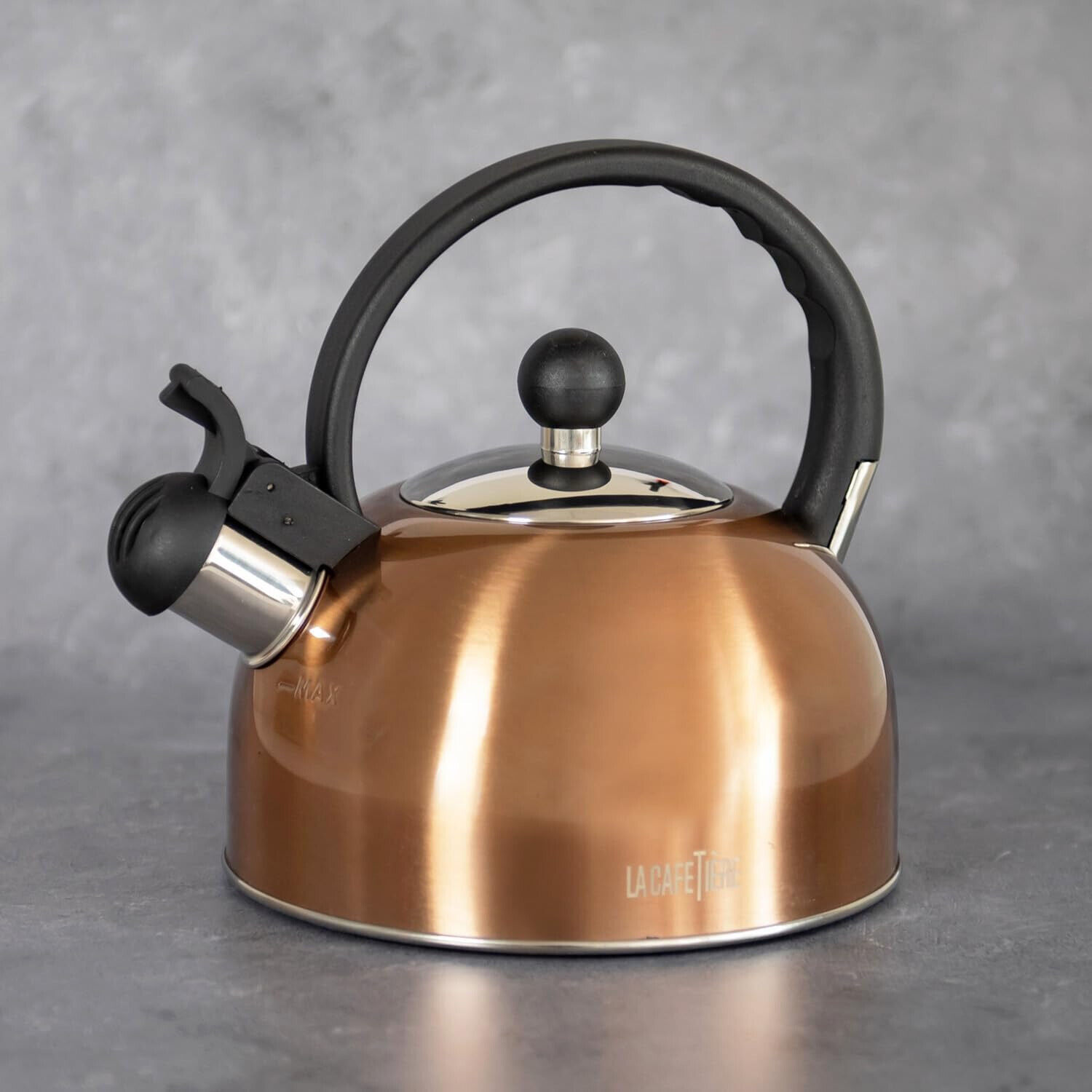 Via Mondo Stainless Steel Whistling Kettle 1L - Soft Gold Stove Top Camping BBQ