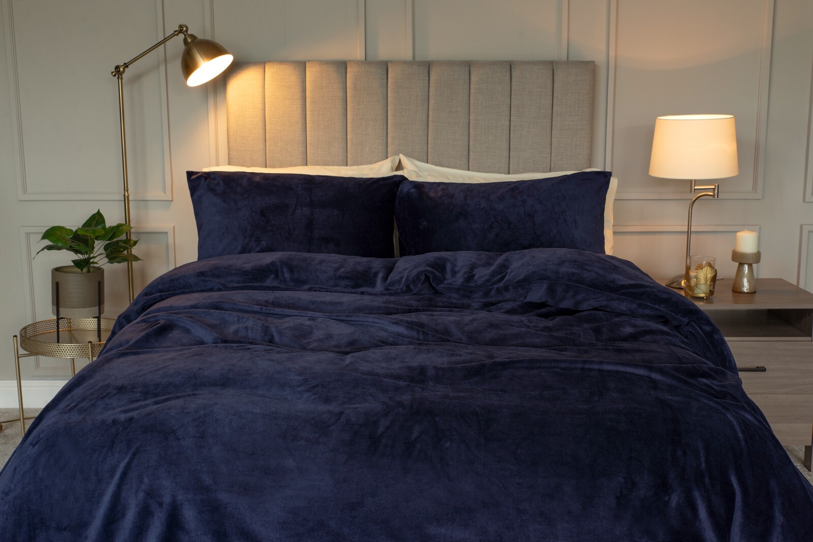 Warm Heat Holder 1.7 Tog Fleece Duvet Cover Set in Navy Blue Superking Bed