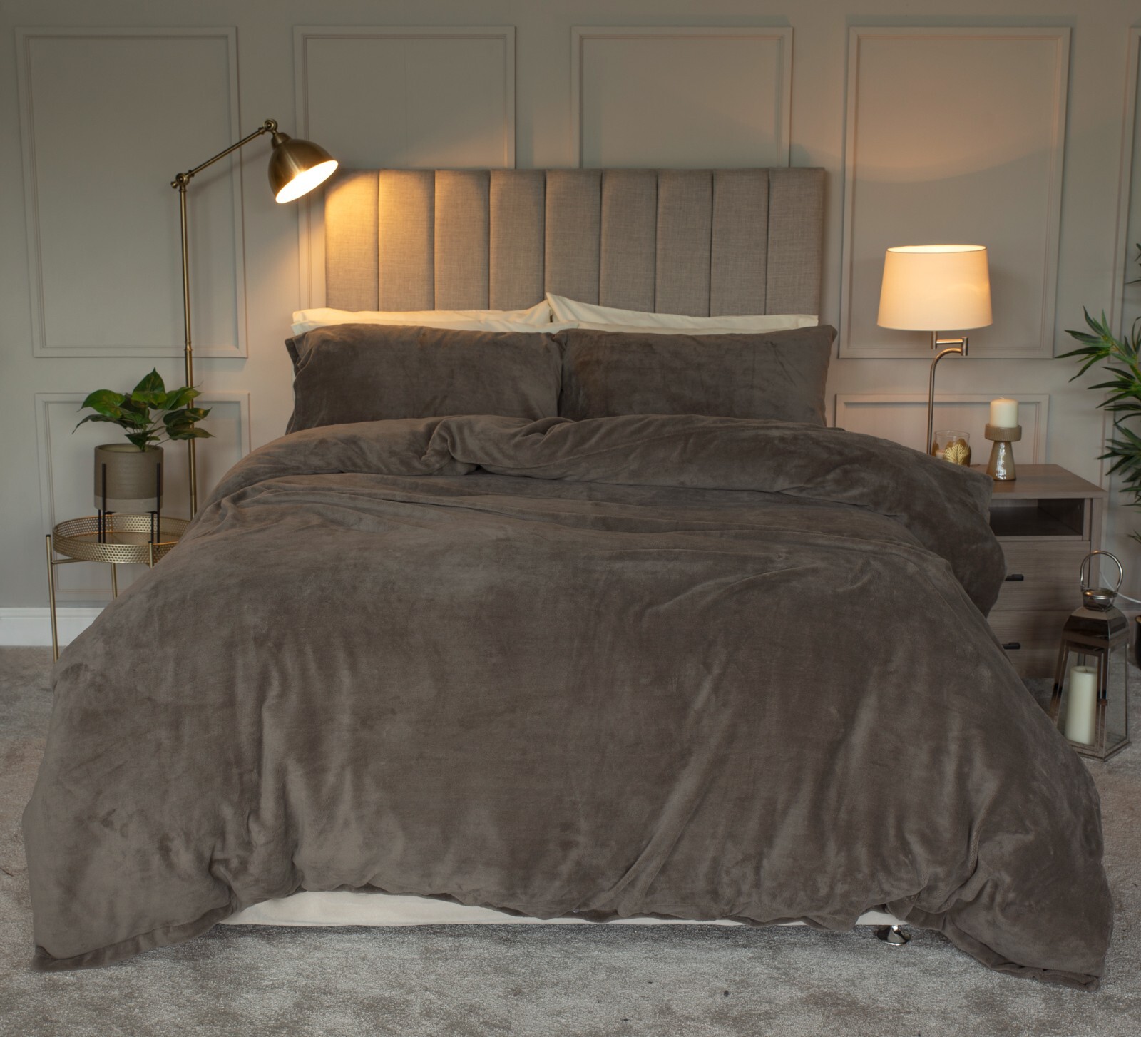 Warm Heat Holder 1.7 Tog Fleece Duvet Cover Set in Grey Superking Bed
