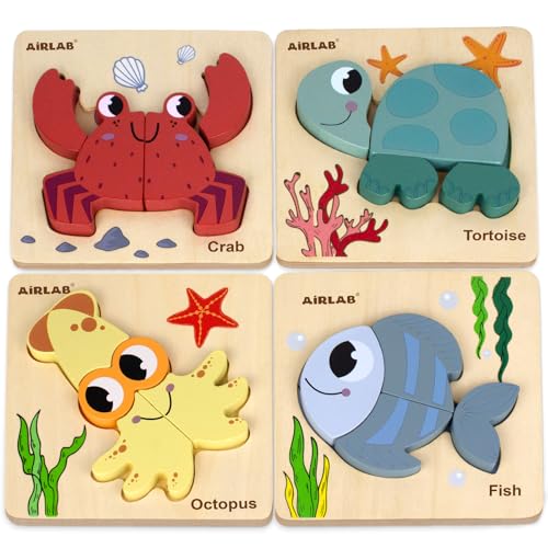 Airlab Montessori Toys for 1 2 3 Year Old Girls Boys, Wooden Jigsaw Baby Chunky Shape Puzzles, Fine Motor Skills Sensory Learning & Educational Travel Toys, First 1st Birthday Gifts