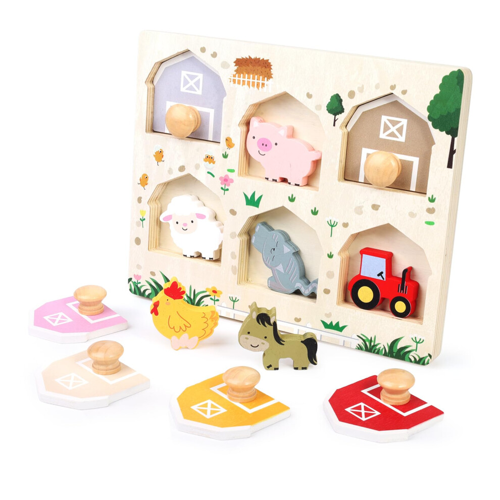 Nabance Wooden Puzzles for 1 2 3 Year Olds Farm Animal Peg Puzzles Montessori Toys for 1 Year Old Early Learning Educational Toys for Toddlers,