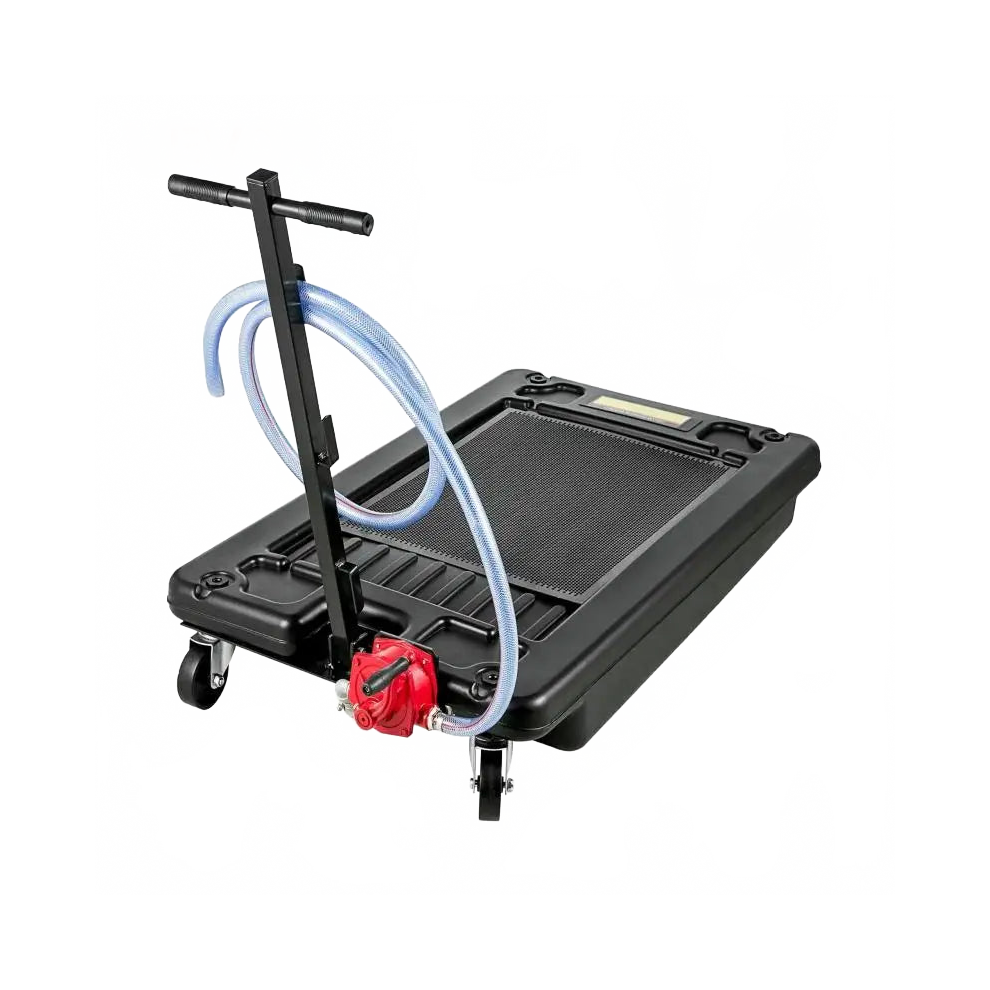 17-Gallon Low Profile Oil Drain Pan with Electric Pump & Hand Crank - Includes 8-10 Ft Hoses & 4 Casters for Oil or Antifreeze Draining