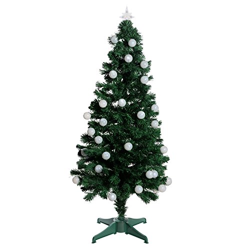 WeRChristmas Pre-Lit Fibre Optic Christmas Tree with LED Ball Lights, 5 ft/1.5 m - Green/White