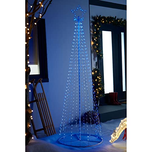 WeRChristmas Pre-Lit Waterfall Christmas Tree, 595 Blue/White LED Lights, 7 ft / 2.1 m