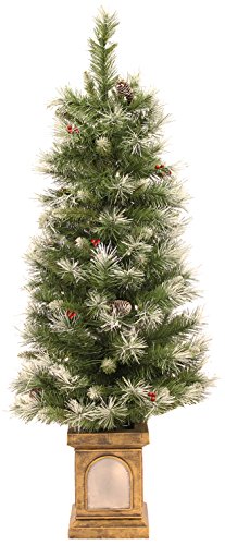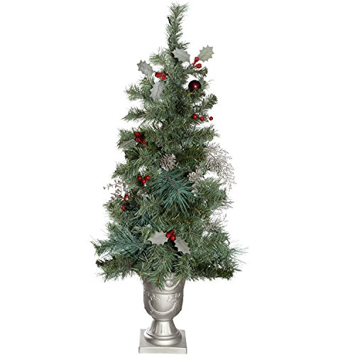 WeRChristmas 3.5 ft Pre-Lit Potted Holly Berry Decorated Christmas Tree with 42-LED Lights, Silver