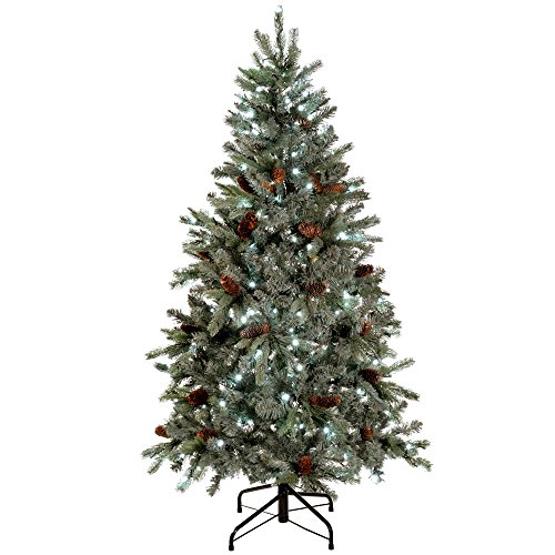 WeRChristmas 5 ft Edwardian Blue Spruce Pre-Lit Multi-Function Christmas Tree Frosted Finish and Pine Cones with 250 White LED Lights/ 8 Setting Controller/ Easy Build Hinged Branches