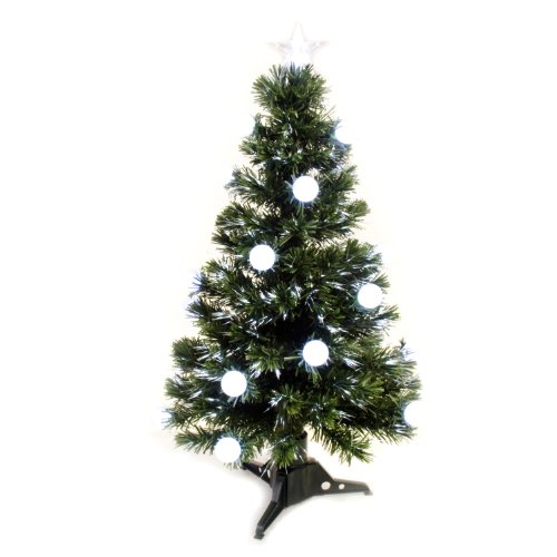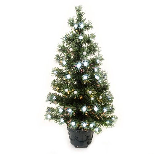 WeRChristmas 3 ft Pre-Lit Fibre Optic Christmas Tree with 20-Ball Decorations, White/ Green