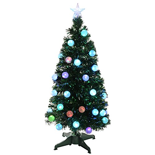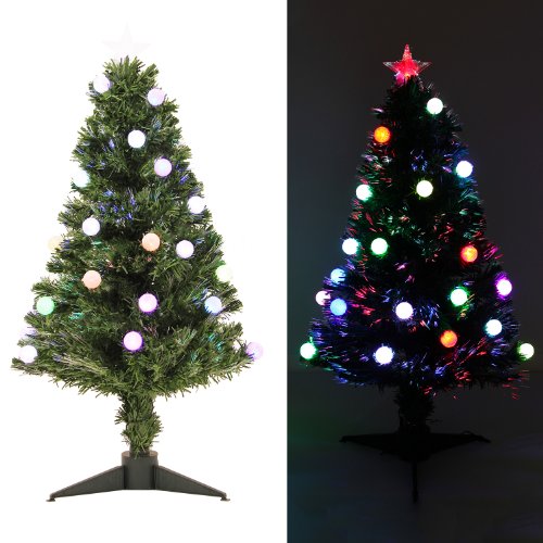 WeRChristmas 3 ft Pre-Lit Multi-Colour Fibre Optic Christmas Tree with 20 Slow Flash LED Baubles and Star Topper