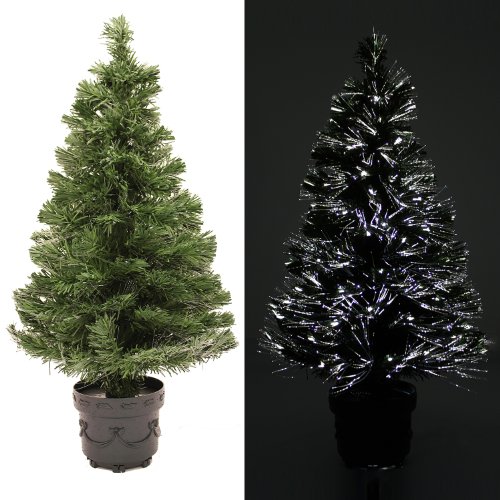 WeRChristmas 3 ft Pre-Lit Fibre Optic Christmas Tree with LED Lights and Star, Green/ White