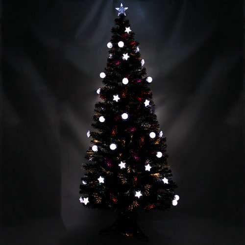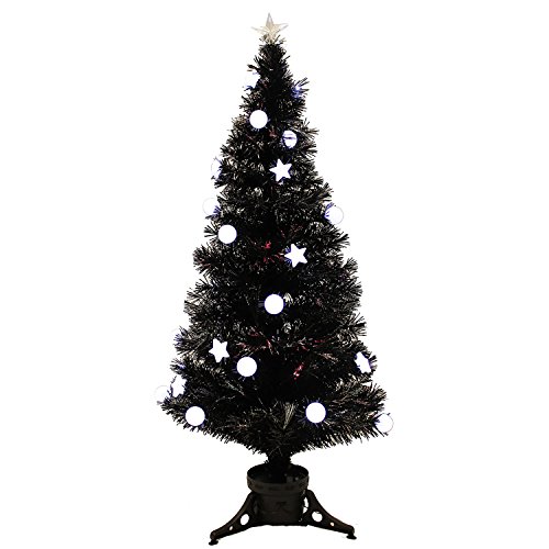 WeRChristmas 5 ft Black Pre-Lit Multi-Colour Fibre Optic Christmas Tree with 27 LED White Stars Baubles and Topper