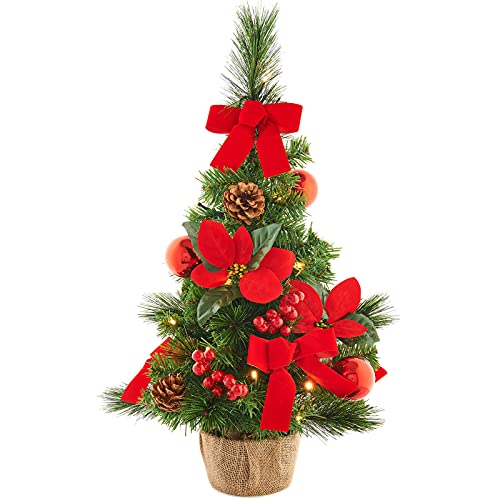 WeRChristmas Pre-Lit Decorated Hessian Base Christmas Tree, Green, 2 ft / 60 cm