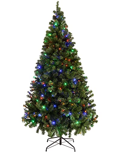 WeRChristmas 6 ft Emerald Green Spruce Pre-Lit Multi-Function Christmas Tree with 200 Static Multi-Colour LED Lights