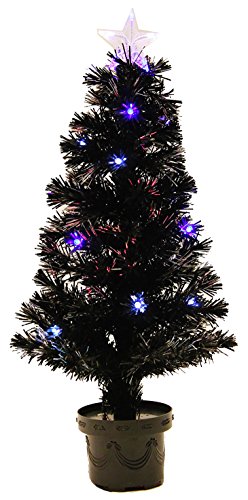 WeRChristmas 3 ft Black Pre-Lit Multi-Colour Fibre Optic Christmas Tree with Blue/ White LED and Star Topper