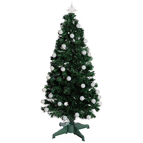 WeRChristmas 4 ft Pre-Lit Fibre Optic Christmas Tree with LED Ball Lights, White/ Green
