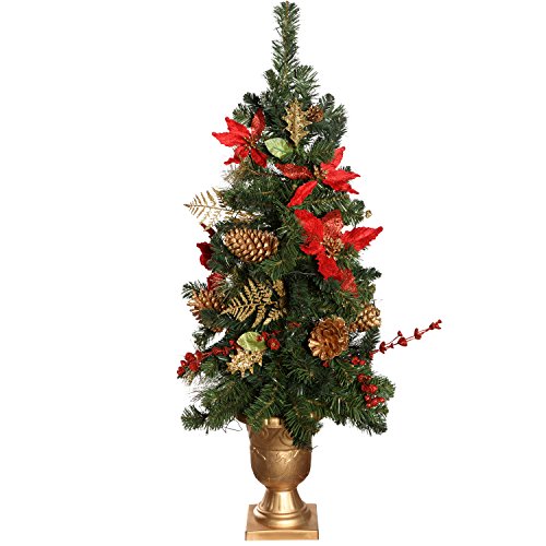 WeRChristmas 3.5 ft Pre-Lit Potted Decorated Christmas Tree with 42-LED Lights, Red/ Gold