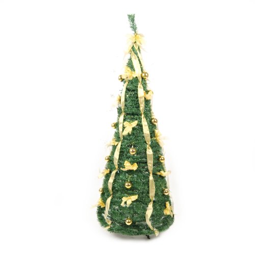 WeRChristmas Pre-Lit Pop Up Christmas Tree with Ribbon and Bauble Decorations, 5 ft/1.5 m - Green/Gold