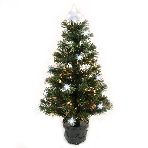WeRChristmas 3 ft Pre-Lit Fibre Optic Christmas Tree with 16-Star Decorations, White/ Green
