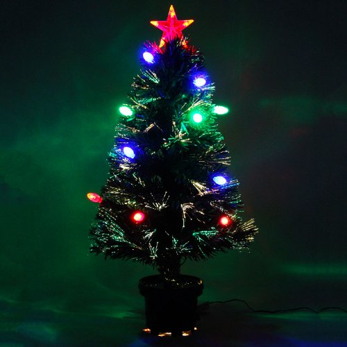 WeRChristmas 3 ft Green Pre-Lit Multi-Colour Fibre Optic Christmas Tree with Red/ Green/ Blue LED Cone and Star Topper
