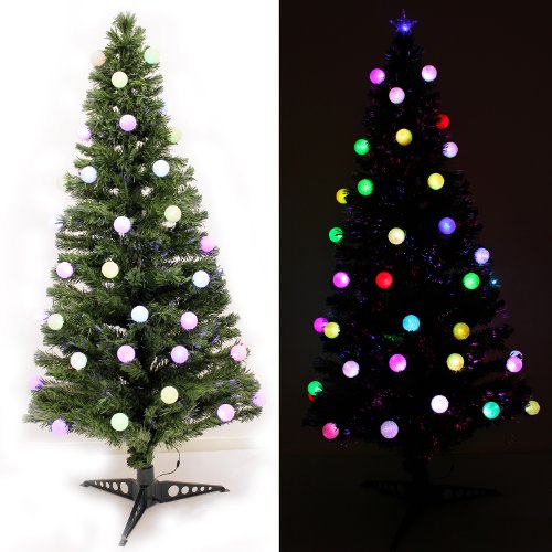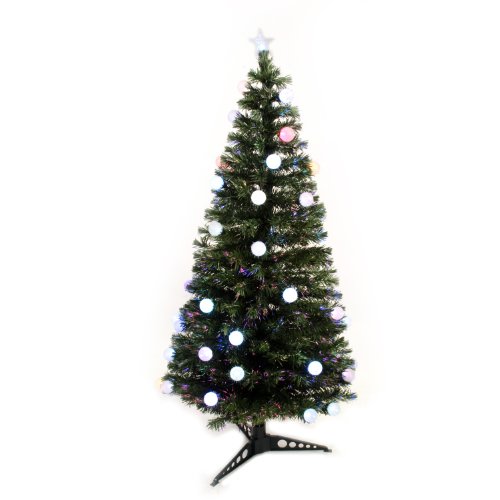 WeRChristmas 4 ft Pre-Lit Fibre Optic Christmas Tree with Flashing LED Ball Lights, Green