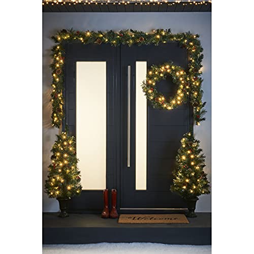 WeRChristmas Pre-Lit Decorative Christmas Tree, Wreath & Garland Set, Green, 12 ft / 3.6 m