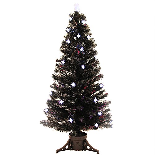 WeRChristmas 5 ft Black Pre-Lit Multi-Colour Fibre Optic Christmas Tree with 32 LED White Stars and Topper