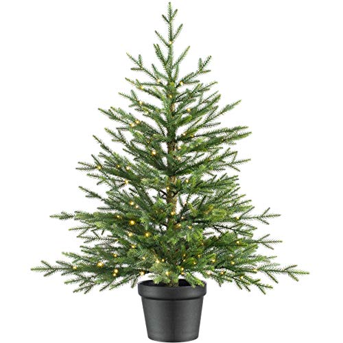 WeRChristmas Pre-Lit Potted Dwarf Fir Christmas Tree, 100 Warm White LED Lights, Green, 3 ft / 90 cm