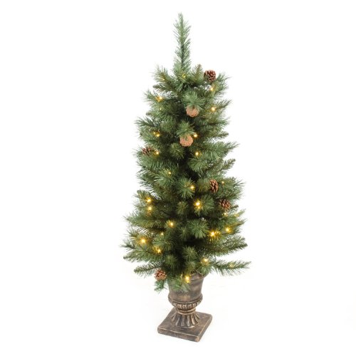 WeRChristmas 4 ft Pre-Lit Potted Christmas Tree with Warm LED Lights and Pine Cones, White