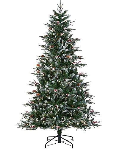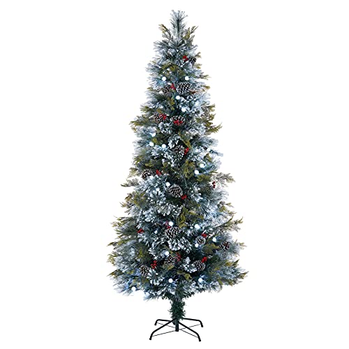 WeRChristmas Pre-Lit Snow Flocked Pinecone & Berries Fibre Optic Christmas Tree, White LED Lights, 6 ft / 180 cm