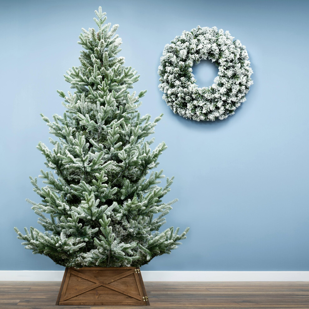 WeRChristmas Pre-Lit Snow Flocked Alpine Christmas Tree, White, 7 ft