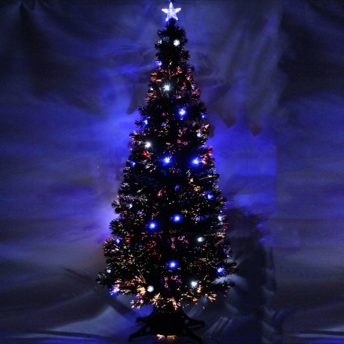 WeRChristmas 5 ft Black Pre-Lit Multi-Colour Fibre Optic Christmas Tree with Blue/ White LED and Star Topper
