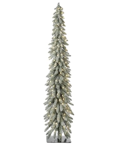 Pre-Lit Snow Flocked Pencil Christmas Tree, 6.5 ft
