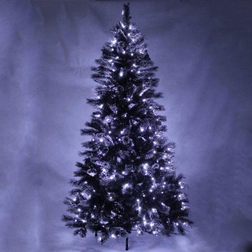WeRChristmas 6 ft Pre-lit Pine Needle Christmas Tree with Silver Glitter Tip and 300 LED Lights, Black/Cool White