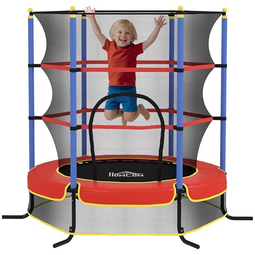 HOMCOM 5.2FT Kids Trampoline for Toddlers with Safety Net Enclosure Outdoor Indoor for Age 3-10 Years