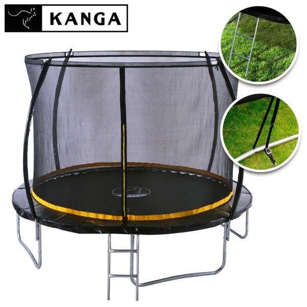 KANGA 10ft Outdoor Trampoline With Enclosure, Net, Ladder & Free Anchor Kit