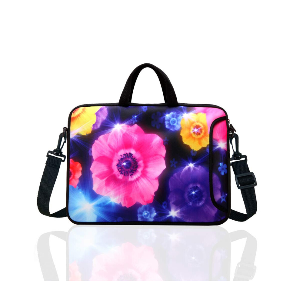 10-Inch Laptop Shoulder Bag Sleeve Case with padded handle for 9.6 9.7"""" 10"""" 10.1"""" 10.5"""" Ipad/Netbook/Tablet/Reader (Colourful Flower)