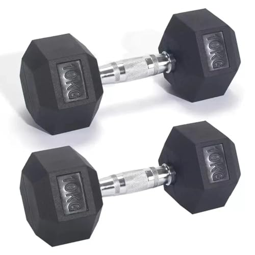 Dumbbells Weights Hex Dumbbell Set Hexagonal Rubber Dumbell with Metal Handles Anti-Rolling Weightlifting Bodybuilding Exercise Fitness Workout Training Home Gym 5-20kg Pairs (10kg x 2 Dumbbells)