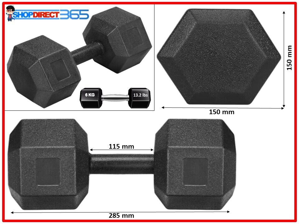 2-10 KG Hex Dumbbells Weight Set Pairs Hand Concrete Plastic GYM Fitness 36-12