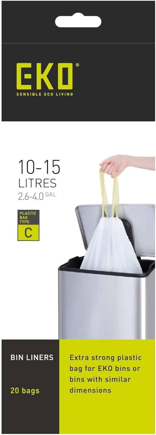 EKO 10-15 Litre Drawstring Bin Bags, Heavy Duty Kitchen Bin Liners for Multi Co
