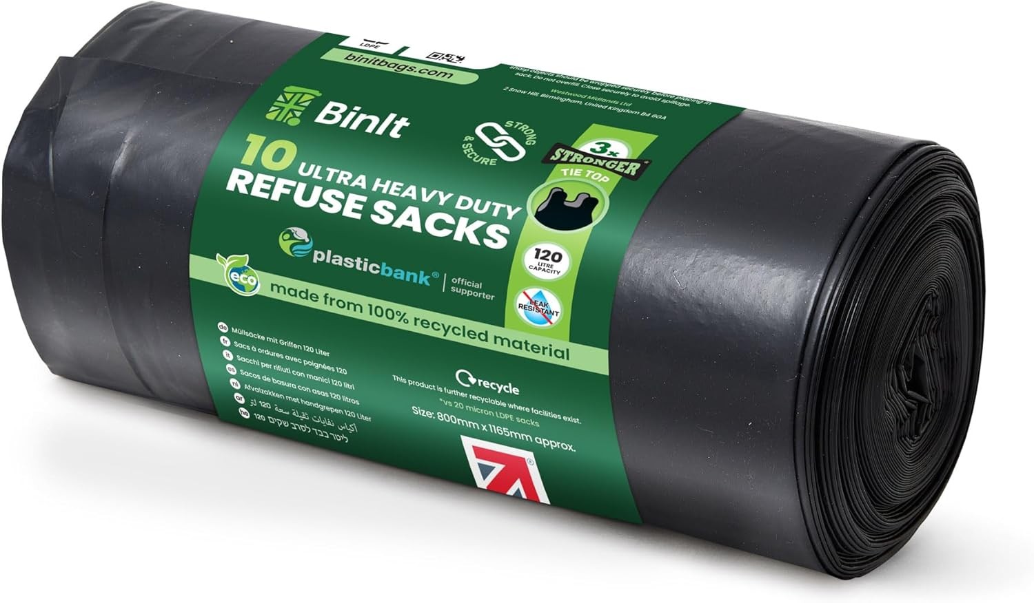 BIN IT 10 Ultra Heavy Duty, 120 Litre XL Refuse Sacks, 10 count (Pack of 1)
