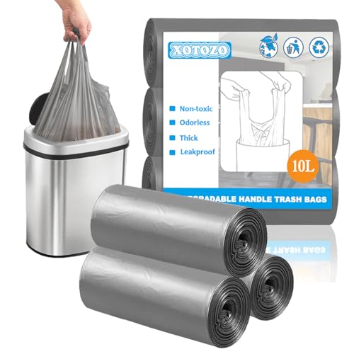10L Bin Liners 60 pcs Tie Handle, 2.6 Gallon/10 Litre Small Bin Bags, Strong Trash Bags Wastebasket for Kitchen Toilet Bathroom Bedroom Office, 45×59 cm (Gray)