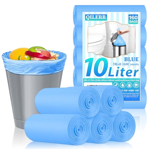 QILERR Small Bin Liners 160 Counts 10 Litre Bin Bag Thickening Pedal Waste Bags Strong Wastebasket Trash Can Liners for Bathroom Toilet, Bedroom, Office, Desk Fit 10-12 ltr, Blue