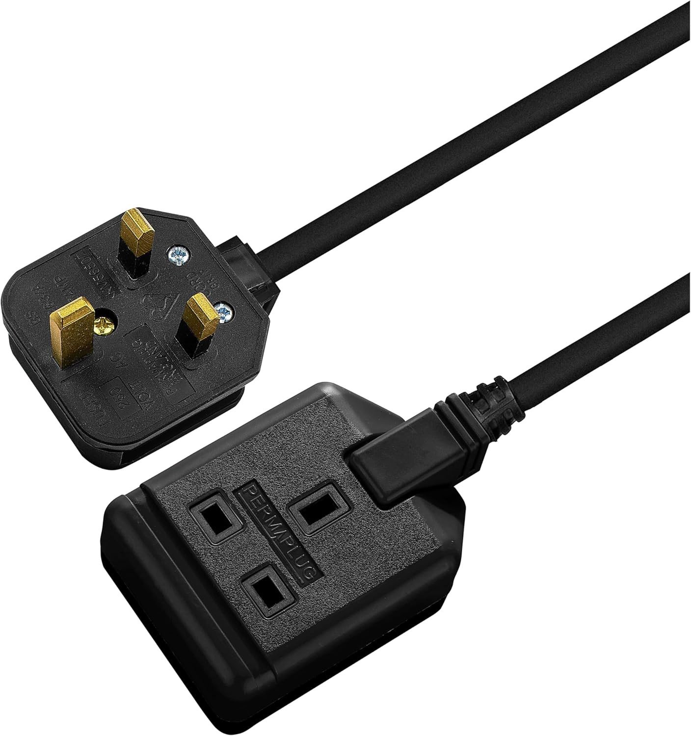 10 Way Gang Tower Mains Extension 2M 13A Lead Cable Socket Adapter Double Sided