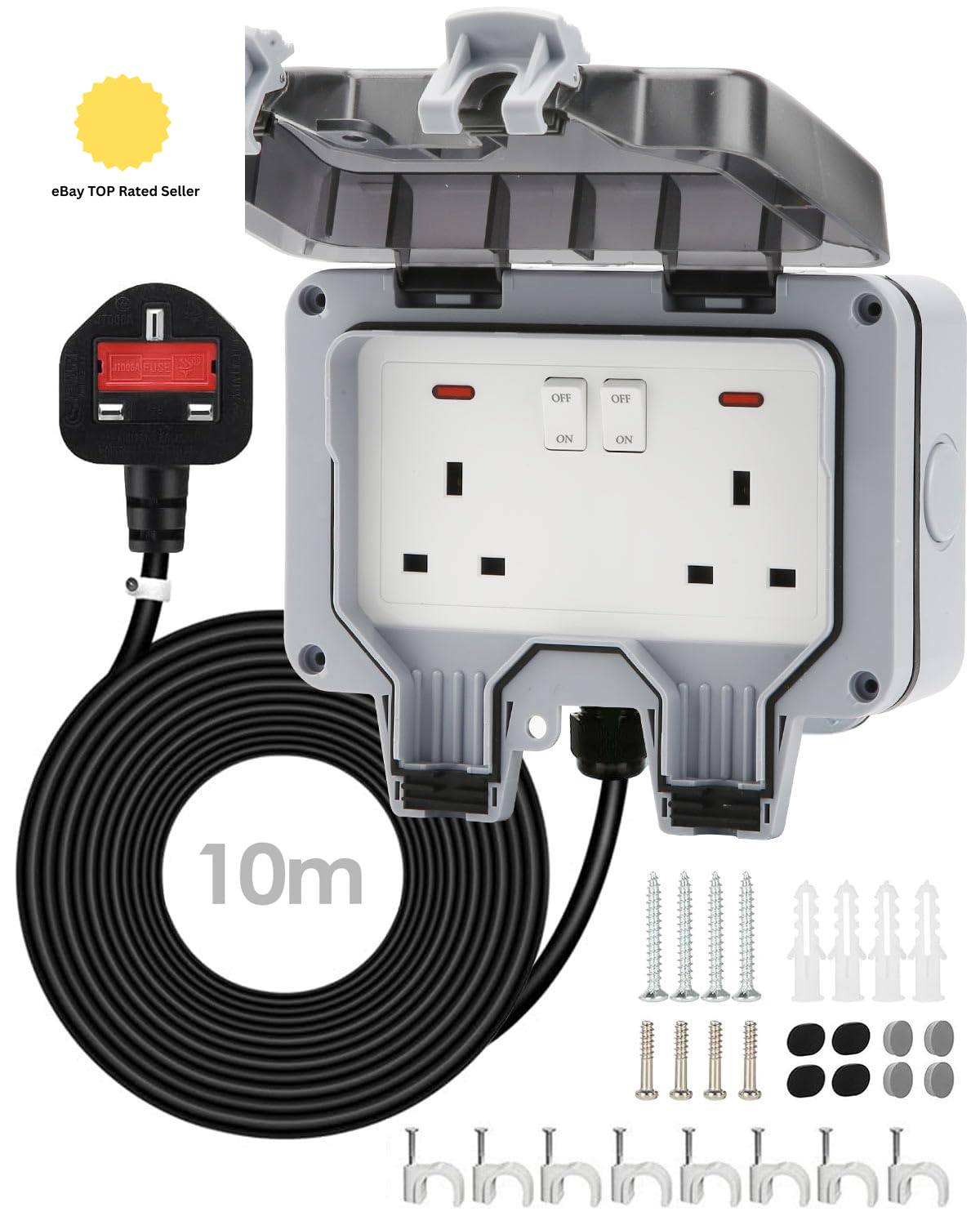 Double Outdoor Socket 10M Extension Lead, Outdoor Plug Sockets Waterproof IP66,