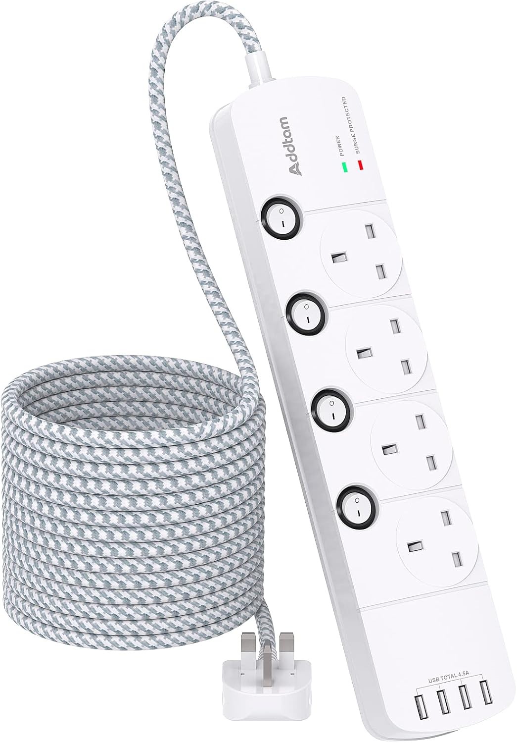 Extension Lead with USB Slots, 4 Way Socket Outlets Power Strips with 4 USB, 10