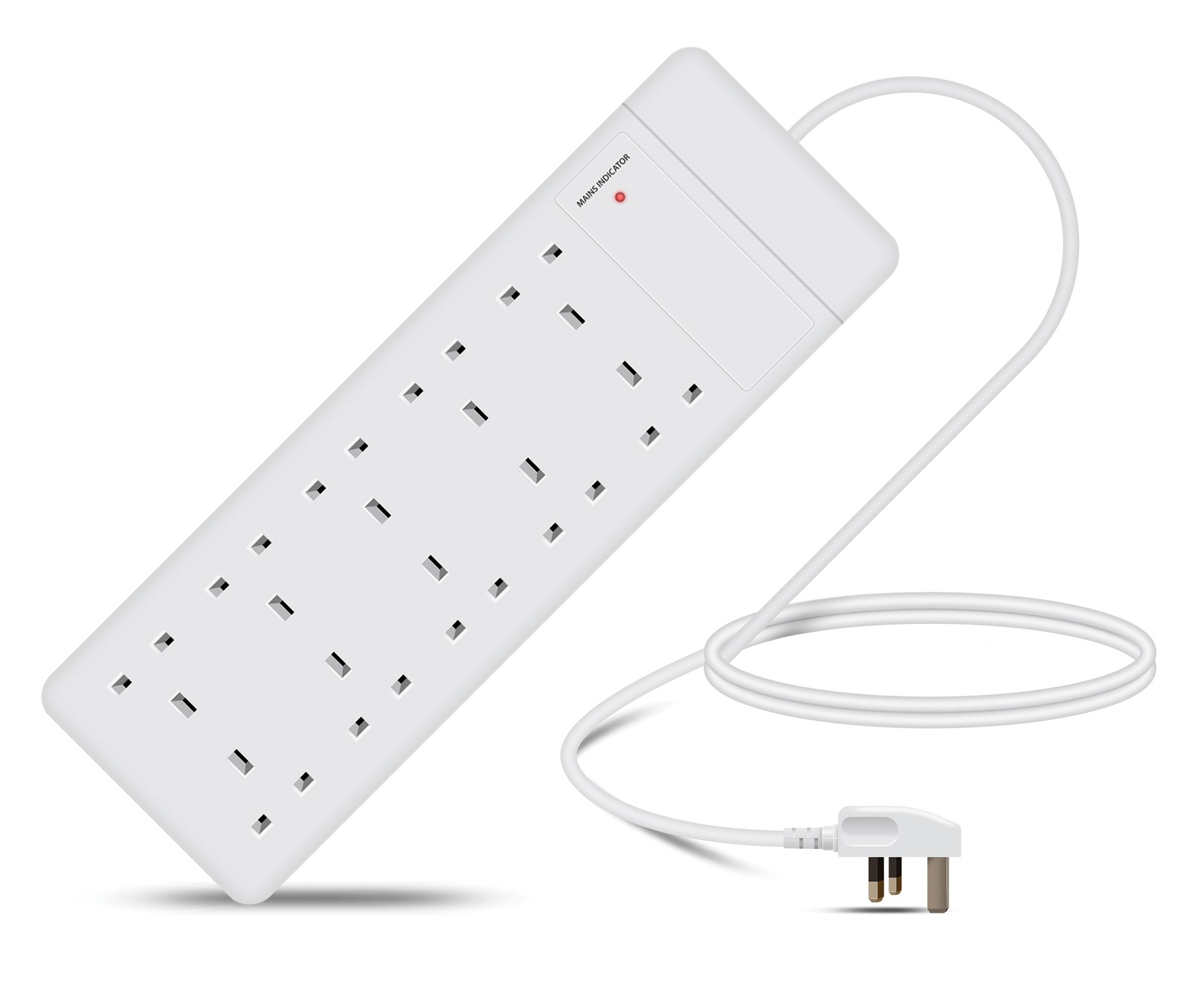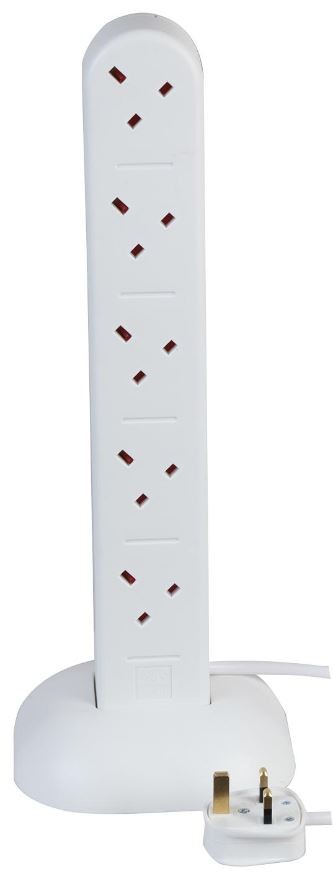 Tower Extension lead 2M, 10 Way (13A 3000W) Surge Protected Extension Sockets w