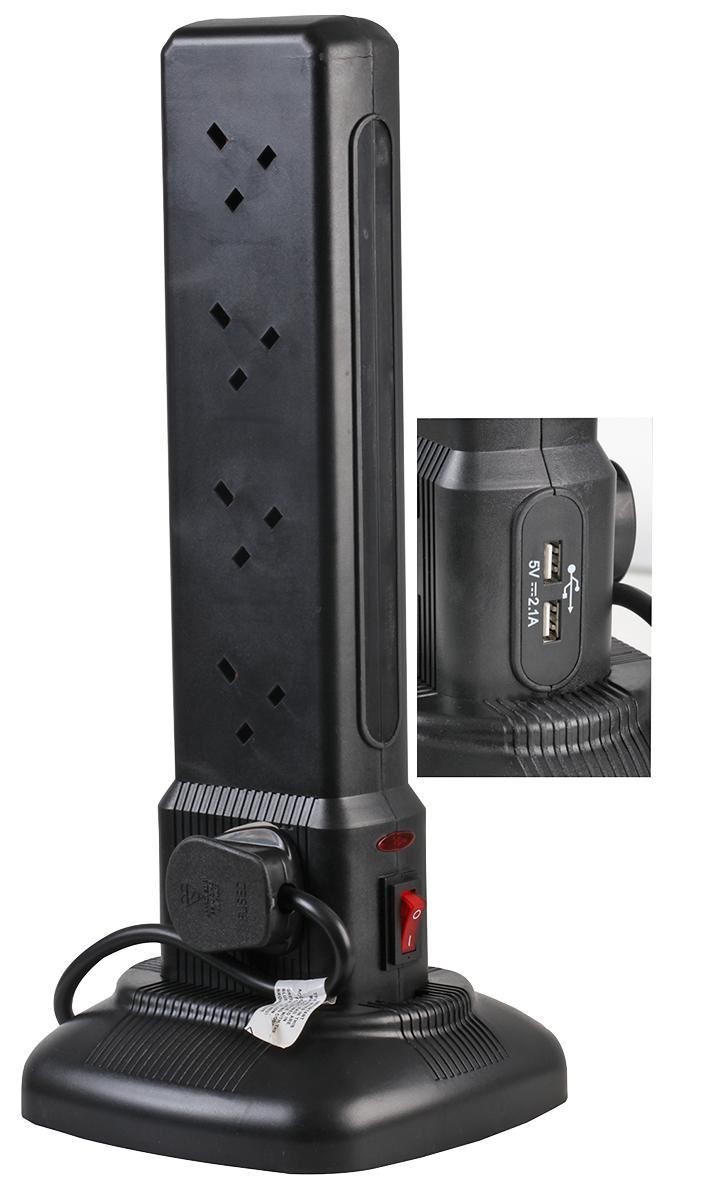 PRO ELEC - 10 Way Switched Tower Extension Lead with USB, Black New