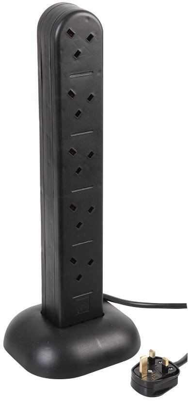 10-Way Extension Lead Tower / 2 Metre Cable / Surge Protected / Home Or Office