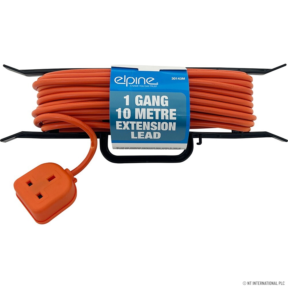 1 GANG EXTENSION LEAD 10 METRE WAY CABLE ORANGE ELECTRICAL MAINS ADAPTER POWER