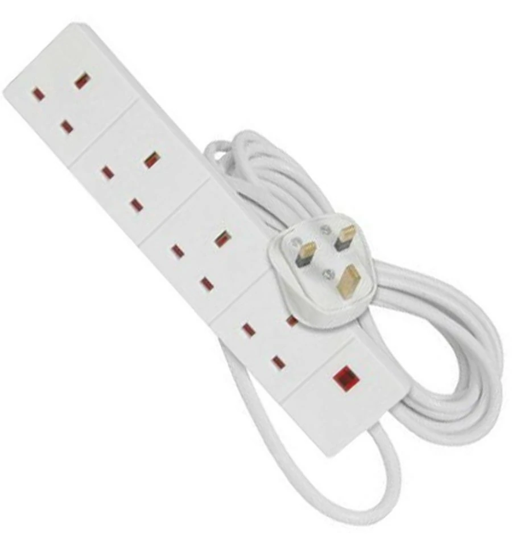 10 Way Extension Lead Multi Plug Mains Power Cable 10 Gang 1m UK Socket White